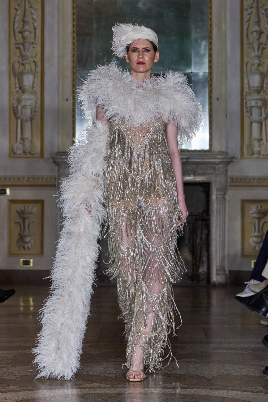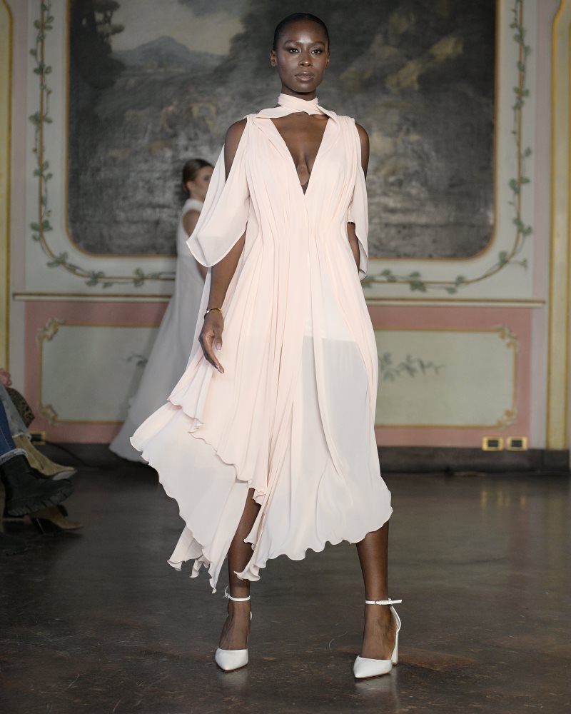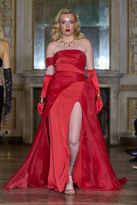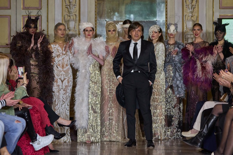 Anton Giulio Grande brought to Milan Fashion Days the authority of Italian haute couture, unveiling a vision where sensuality, artisanal savoir-faire, and a powerful sense of personality define modern elegance. Renowned for his entirely handmade creations developed in traditional ateliers where time replaces machinery, he continues to celebrate a woman whose presence transcends conventional beauty — one remembered for her character and allure.