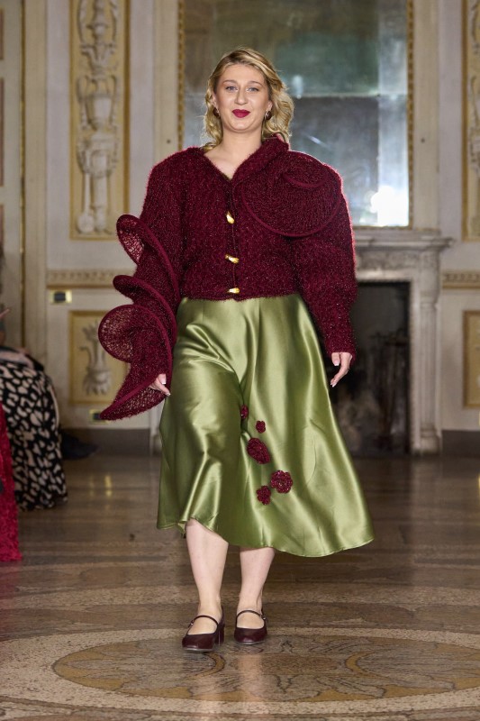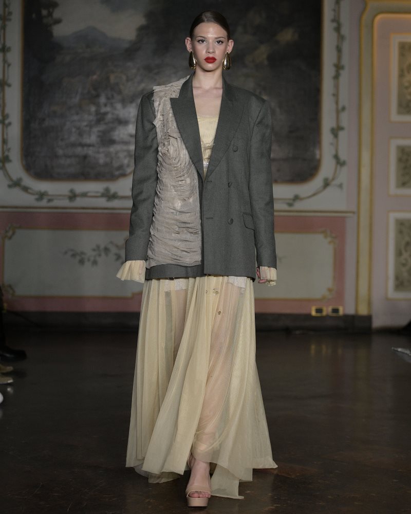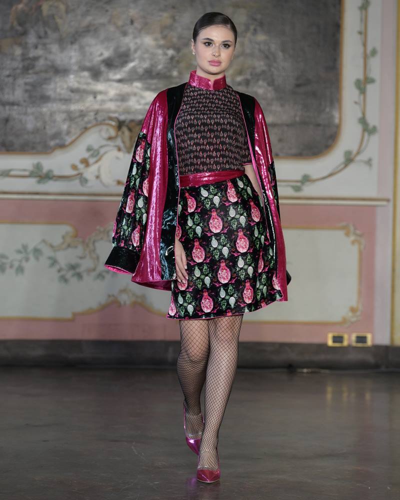 Tinatin Magalashvili presented Color Manifesto, a collection that treated color not as decoration but as a language of identity. One of the most distinctive voices in contemporary Georgian fashion, the designer transformed the runway into an emotional composition where aristocratic references, cultural memory, and modern feminine power converged. Structured silhouettes and fluid layers allowed rich, saturated hues to move like living energy. More than a seasonal proposal, Color Manifesto emerged as a visual philosophy — a statement of individuality, intellect, and the quiet authority of a woman who defines fashion on her own terms.