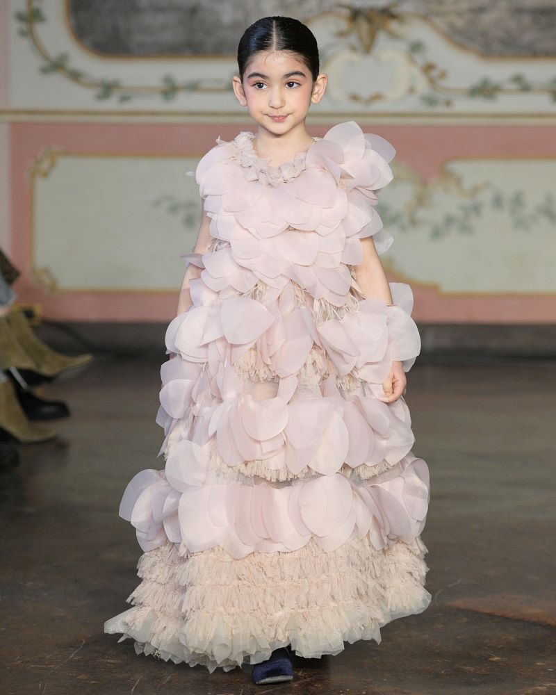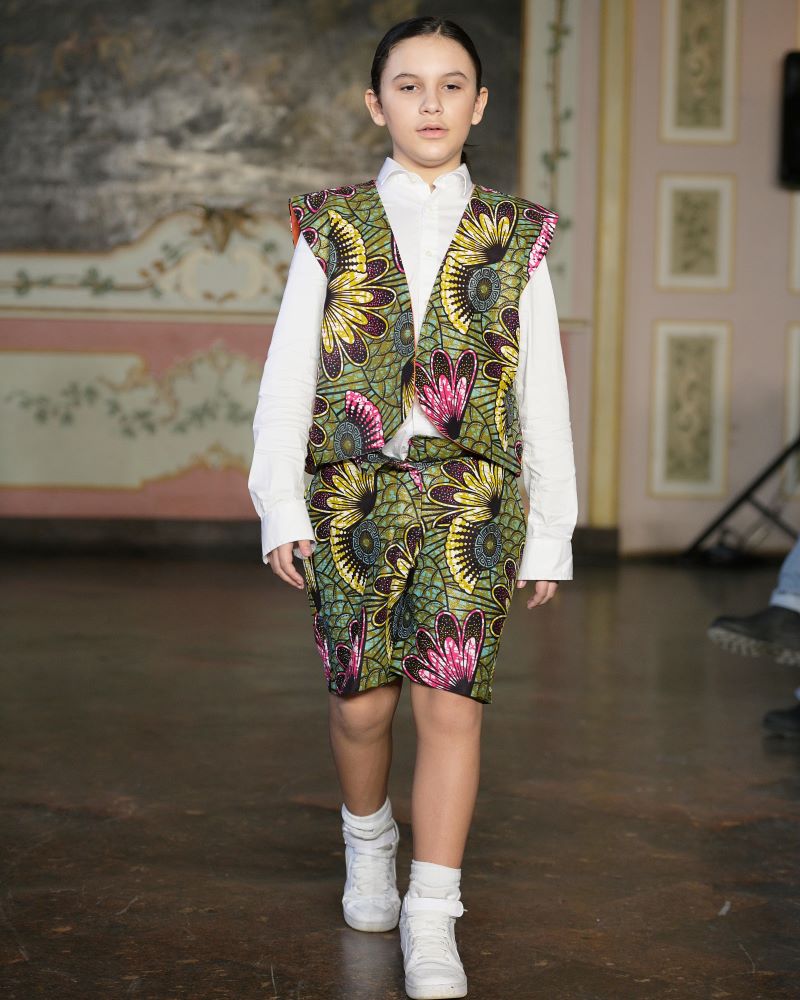 Enhle Babes Couture brought a radiant celebration of African heritage to the runway, presenting a collection that translated royalty into joyful couture for a new generation. Founded in South Africa by prodigious designer Enhle at just ten years old, the brand infused Milan with vibrant colour, rich cultural prints, and a spirit of unapologetic optimism. Silhouettes designed for children and teens carried the confidence of ceremonial dress, where sparkle, texture, and bold patterning became symbols of identity and pride.