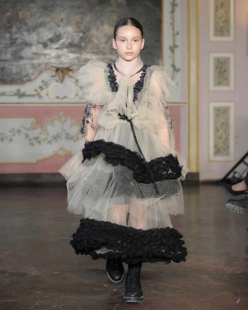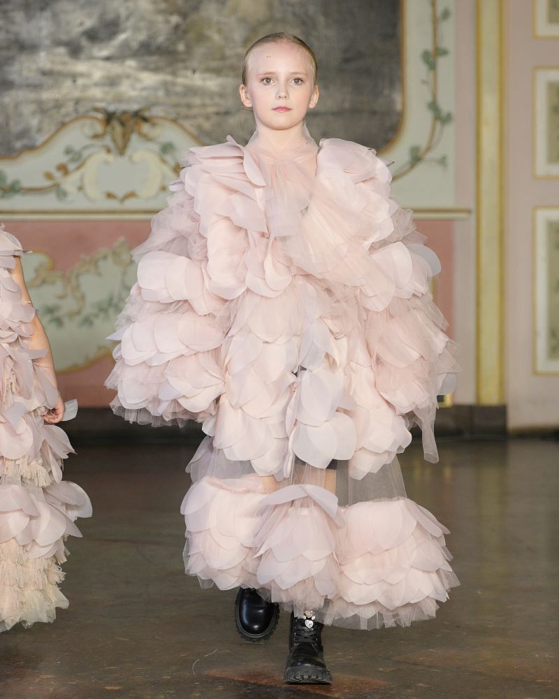 by Vel unveiled a new chapter of its signature line, Secret Garden: Alice Through the Looking Glass, a collection that turned the runway into a dreamscape of memory, reflection, and inner freedom. Founded in Ukraine by two sisters, the brand continues to explore the emotional language of childhood through an unmistakably contemporary lens, where airy, fluid dresses, sculptural volumes, and softly reimagined archival colours moved with weightless grace.