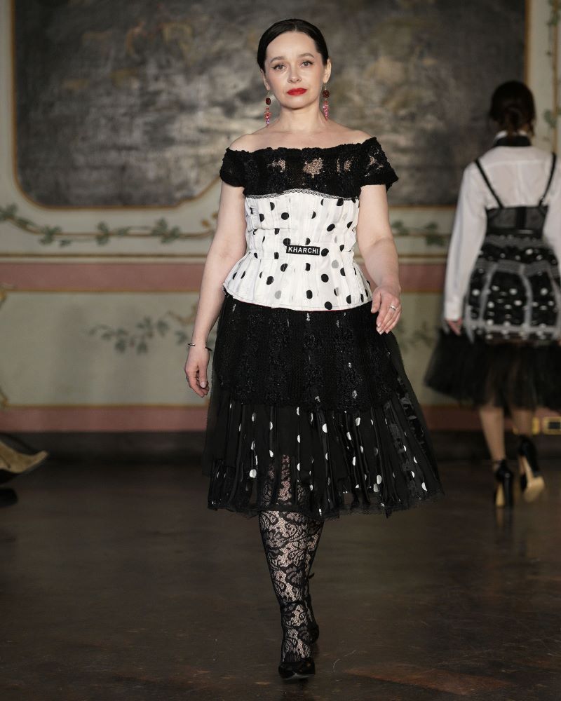 KHARCHI presented Space Between Us, a collection that approached fashion as a meditation on time, identity, and human connection. Founded by Georgian designer Sofia Kharchilava, the independent house transformed the runway into a quiet yet powerful dialogue where women of different ages appeared not in contrast, but in continuity — a living timeline of experience and desire. Rooted in the cultural symbolism of Samegrelo and shaped by a philosophy of slow, handcrafted creation, the silhouettes explored texture, movement, and the poetry of space as an emotional force. Here, distance became unity, age lost its authority, and elegance existed beyond definition.