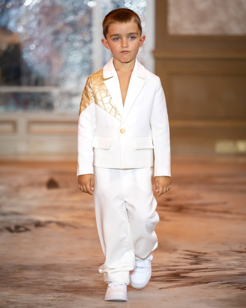 The collection was presented by the young talents of Babyphotostars, a leading international kids modeling and production center. For its remarkable dedication to discovering and elevating young talent worldwide, it was also awarded Best International Kids Talent Production Center at the Paris Fashion Awards.
