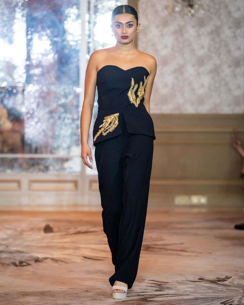 Thomas Abraham presented his couture collection “Static Riot,” showcasing his signature blend of aesthetics and functionality. Known for bespoke, handcrafted designs that balance beauty with comfort, his pieces once again proved why his work is favored by Bollywood celebrities, music icons, and international pageant winners.